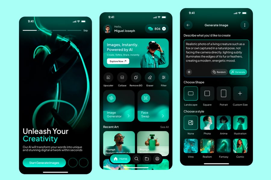 非常适合人工智能艺术平台、创意工具、照片生成应用程序或寻求现代直观界面以增强用户创造力的数字设计服务。