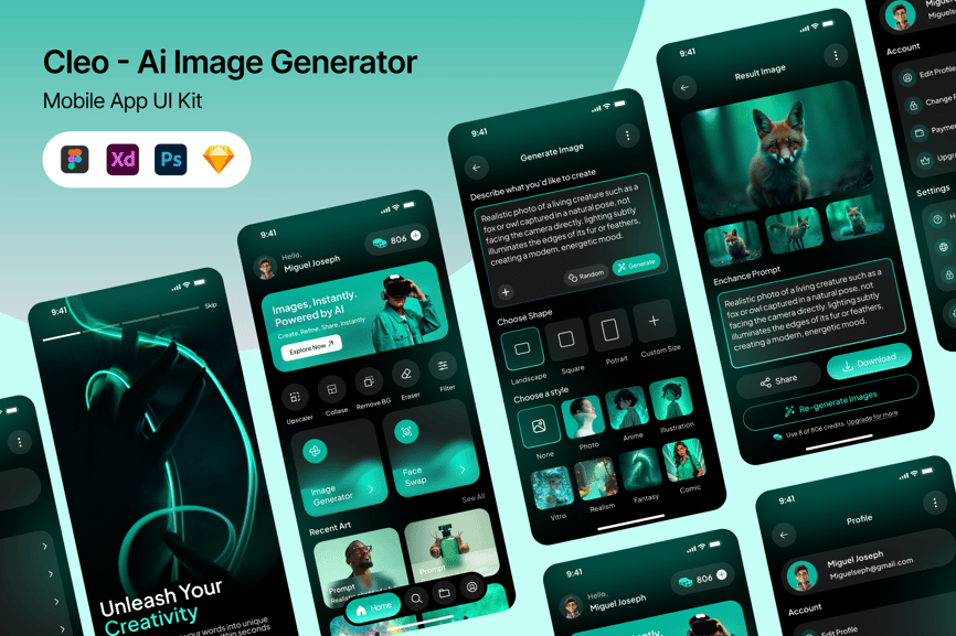Cleo 是一款简洁现代的移动 UI 套件,专为 AI 艺术创作、数字设计工具和视觉内容平台而设计,助您将想象力变为现实。其简洁的界面、流畅的操控和结构清晰的工作流程,让用户能够轻松生成图像、优化提示并探索创意输出。Cleo 帮助开发者构建引人入胜、面向未来的 AI 图像生成器体验,激发每一步的创造力。
