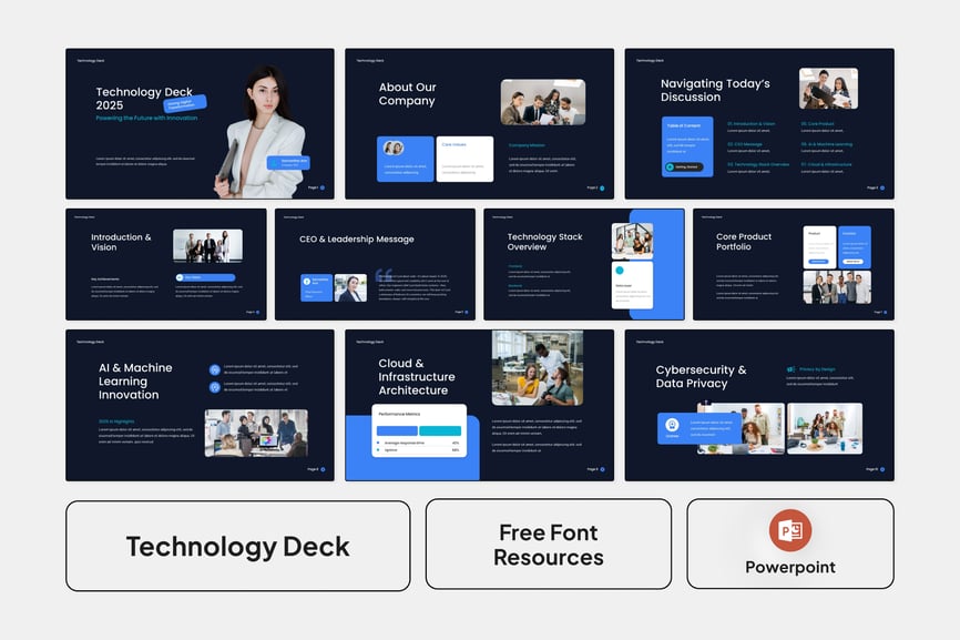 这套技术演示文稿非常适合初创公司发布前沿产品、企业展示数字化解决方案以及团队阐述创新战略。它也适用于SaaS演示、IT咨询提案、技术会议以及企业创新成果汇报等需要清晰权威表达的场合。