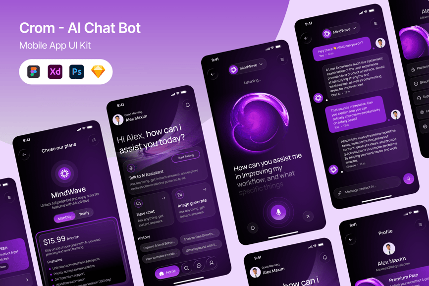 **Crom – 人工智能聊天机器人移动应用程序**