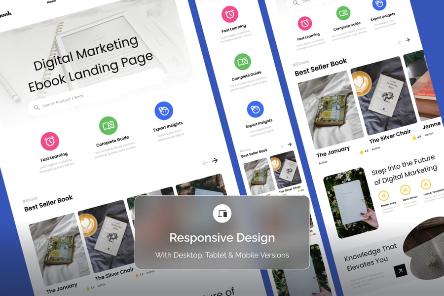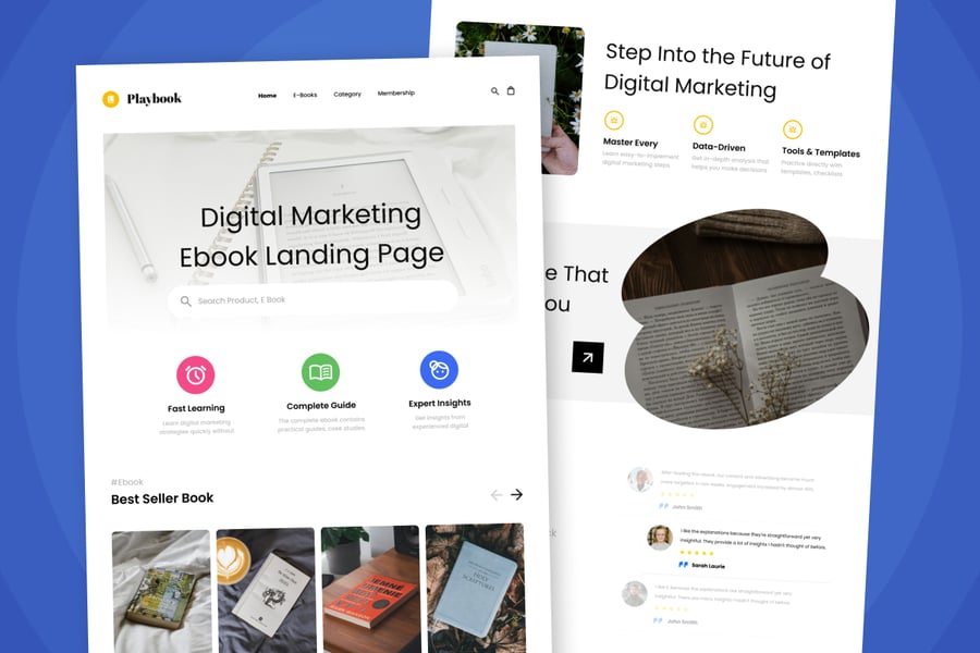 这款数字营销电子书落地页模板旨在帮助数字营销人员、代理机构和在线教育者清晰、权威且极具说服力地展示他们的电子书。它采用现代化的增长导向型用户界面,从开篇亮点到产品优势和章节预览,每个部分都引导用户快速有效地理解您的价值主张。这种清晰的视觉层级结构能够立即提升可信度,并树立专业的品牌形象。