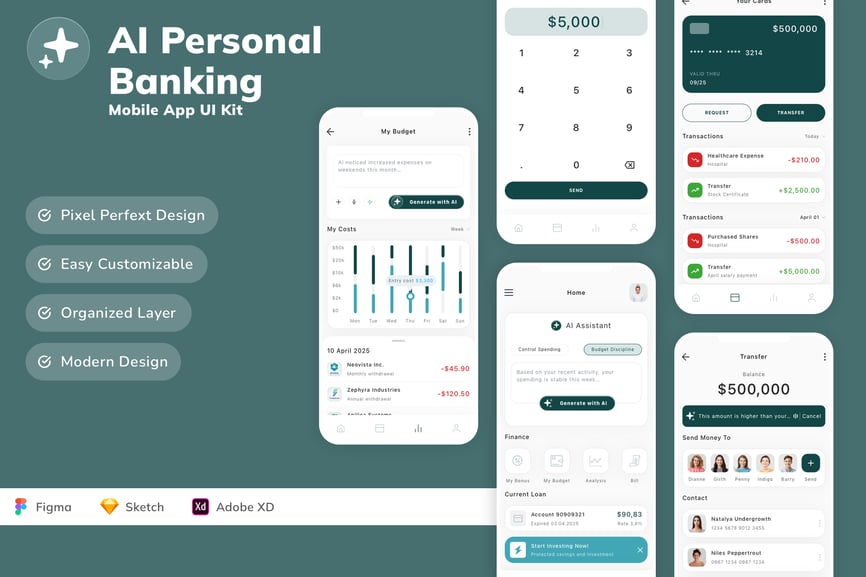 每个屏幕都可完全自定义,易于使用,并针对 Figma、Sketch 和 Adobe XD 进行了精心设计。