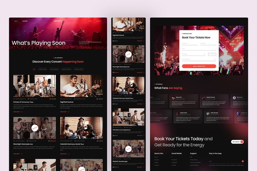 Quickets 采用充满活力、以音乐会为灵感的视觉风格,将音乐体验置于中心位置: