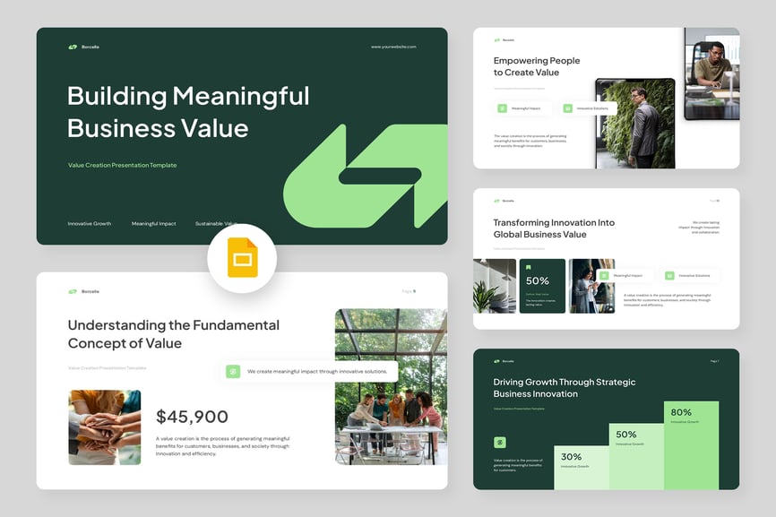 **价值创造商业计划演示模板** 是一个全面且精心设计的幻灯片框架,旨在帮助企业家、初创公司、顾问和企业战略家以最大的影响力阐明价值创造、商业战略、增长机会和投资者前景。