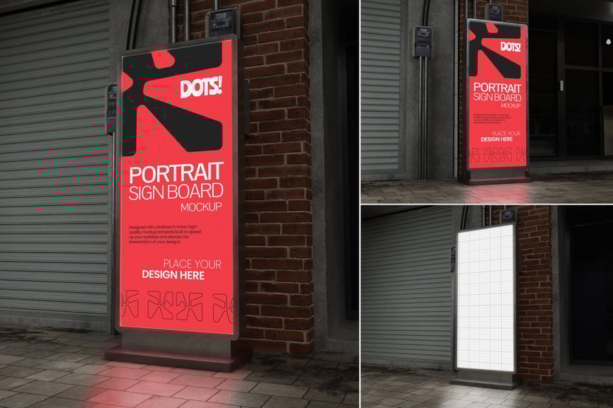 这款模型采用易于使用的智能对象设计,确保流畅的编辑流程,同时保持高度逼真的效果。无论您是准备客户演示文稿、展示作品集,还是创建宣传预览,这款竖版标牌模型都能在真实环境中,以精致而令人信服的方式呈现您的视觉概念。
