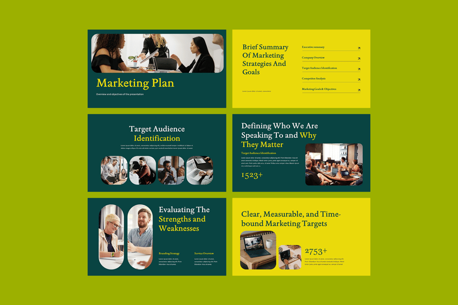 此模板采用现代专业的设计,搭配均衡的排版和动态信息图,让您的演示文稿既赏心悦目又易于理解。利用可自定义的图表、示意图和图片占位符,突出展示市场调研、社交媒体计划和广告效果,助您打造引人入胜、以结果为导向的营销计划,从而推动业务增长。适用于营销策略、数字营销、营销提案、营销演示、商业计划、营销演示文稿、品牌策略、活动策划、营销报告和社交媒体营销等领域。