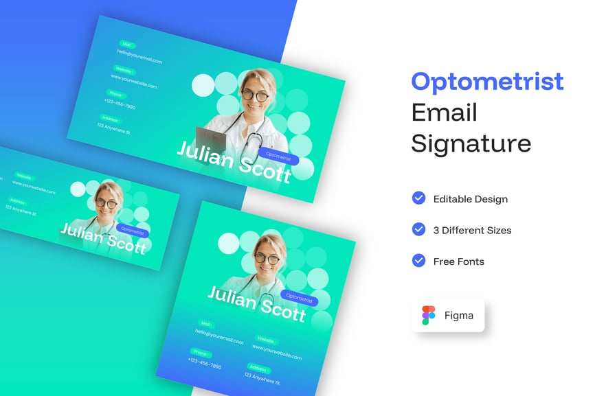 简洁专业的电子邮件签名设计,适用于商务或个人用途。一款设计提供三种不同尺寸,满足您的多种需求。现代、优雅、简洁的设计风格,令您的电子邮件签名更显专业。