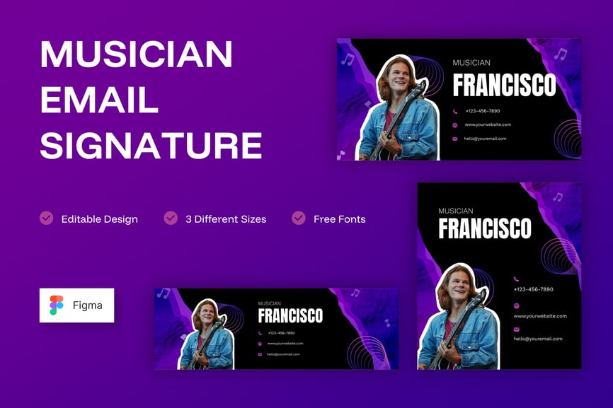 简洁专业的电子邮件签名设计,适用于商务或个人用途。一款设计提供三种不同尺寸,满足您的多种需求。现代、优雅、简洁的设计风格,令您的电子邮件签名更显专业。