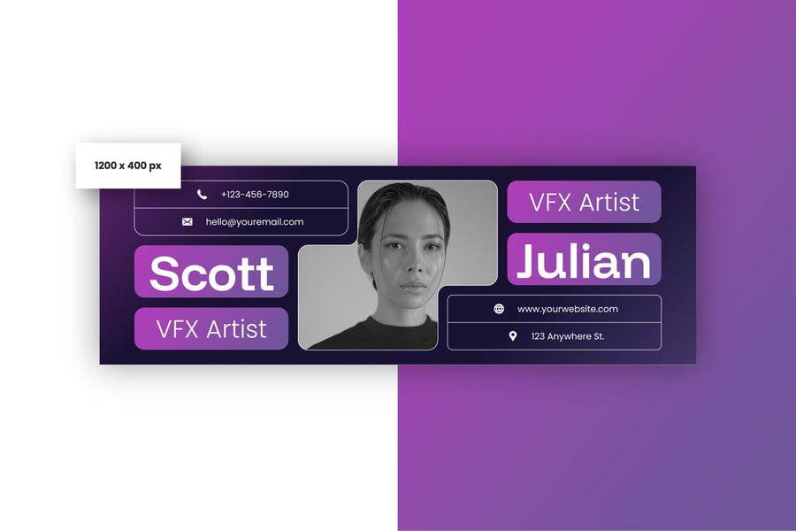 简洁专业的电子邮件签名设计,适用于商务或个人用途。一款设计提供三种不同尺寸,满足您的多种需求。现代、优雅、简洁的设计风格,令您的电子邮件签名更显专业。