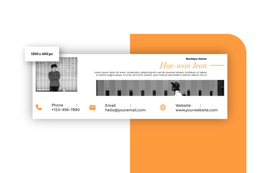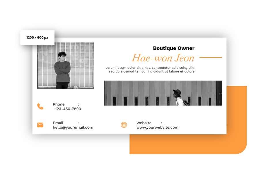 简洁专业的电子邮件签名设计,适用于商务或个人用途。一款设计提供三种不同尺寸,满足您的多种需求。现代、优雅、简洁的设计风格,令您的电子邮件签名更显专业。