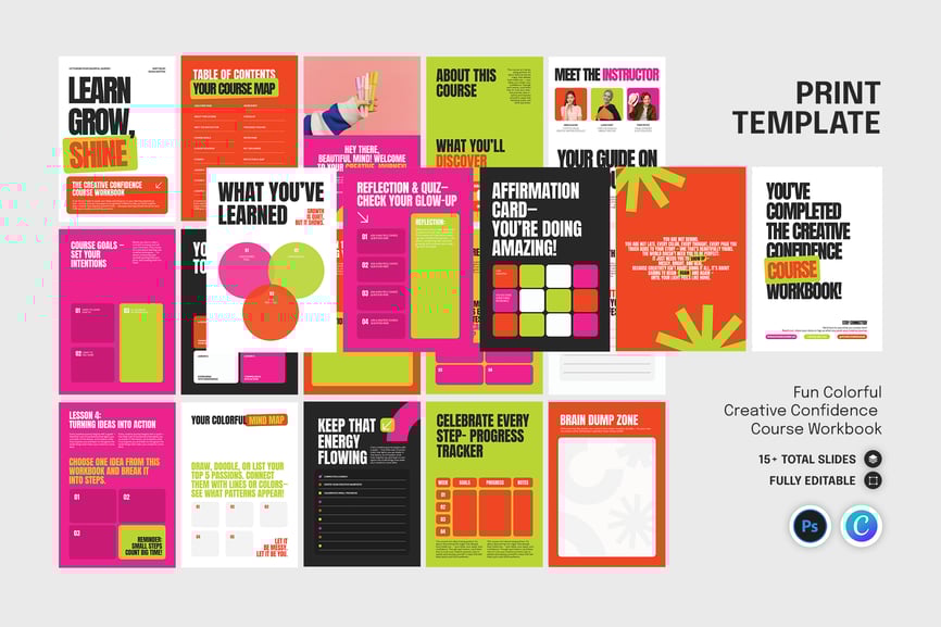 使用“趣味缤纷创意自信课程练习册”来提升你的创造力和自我成长之旅吧!这是一款充满活力、现代感十足且完全可编辑的模板,旨在通过每一页激发你的动力和自信。它采用大胆的字体、俏皮的色彩组合和互动练习册版块,非常适合希望以有趣且有意义的方式吸引受众的教练、创作者和教育工作者。