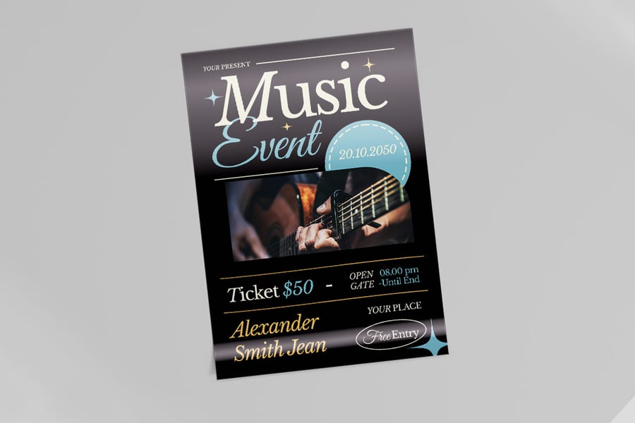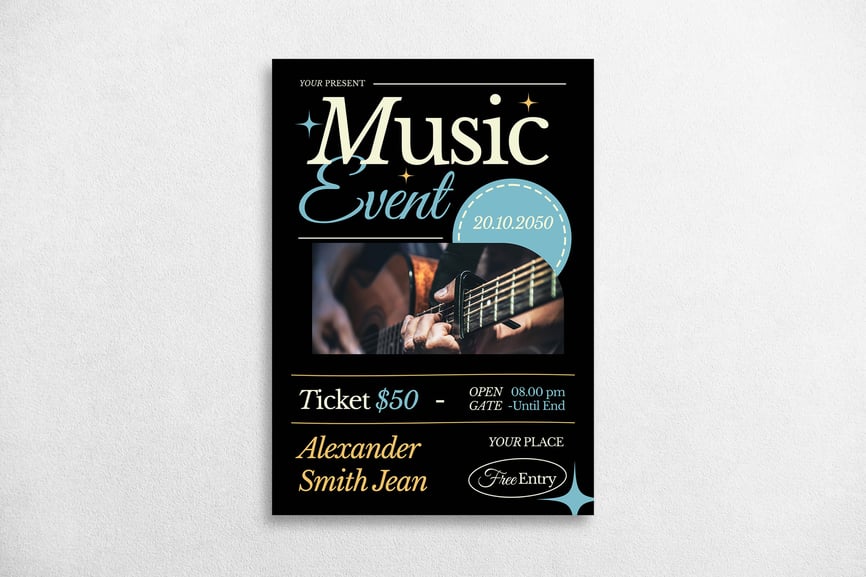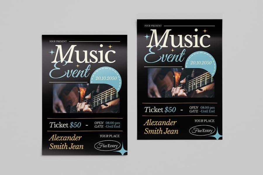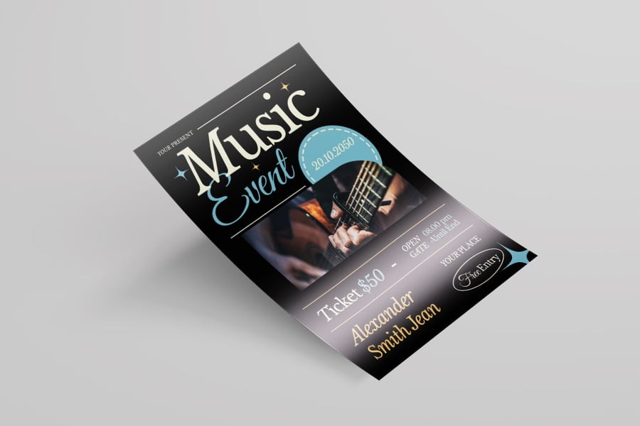 探索我们独家的**音乐活动传单**模板——清新、优雅、现代的设计风格,专为推广您的创意商务套餐而打造。这款出色的传单将提升您的推广效果。