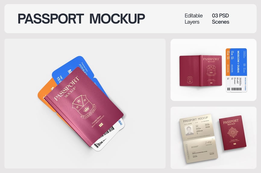 隆重推出我们独家设计的国际护照封面样机套装,旨在以逼真专业的方式展示您的护照、护照封面及相关文件。这套样机套装为您提供了一个完美的平台,用于展示您的护照封面设计,凸显身份证明和旅行证件在国际旅行和公民身份领域的重要性。这款功能全面的样机套装将助您将护照设计提升至全新高度,是旅游、身份识别和度假行业的理想之选。