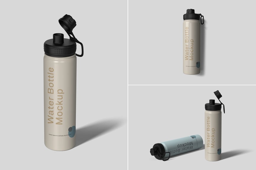 这款可定制的运动水瓶模型包含您所需的一切,助您打造逼真的项目外观,完美展示您的设计或标志。只需点击几下,即可轻松创建精美的高质量图像,完美呈现您的设计。您将获得 5 个不同样式的 PSD 文件和 1 个 PDF 说明文件。