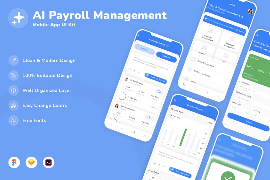 当前位置:首页UI素材Ui KitsAI薪资管理移动应用UI套件
