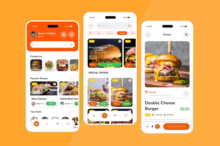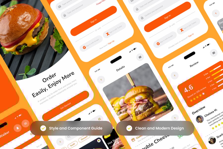 FoodieGo 是一款充满活力且时尚现代的外卖移动端用户界面,旨在让订餐体验充满乐趣、快捷高效且令人难以抗拒。它采用醒目的食物图片、柔和的圆角卡片和友好的交互设计,帮助设计师打造轻松愉悦的美食市场体验,不仅操作简便,而且视觉效果诱人,完美适用于面向日常用户的外卖或自取平台。