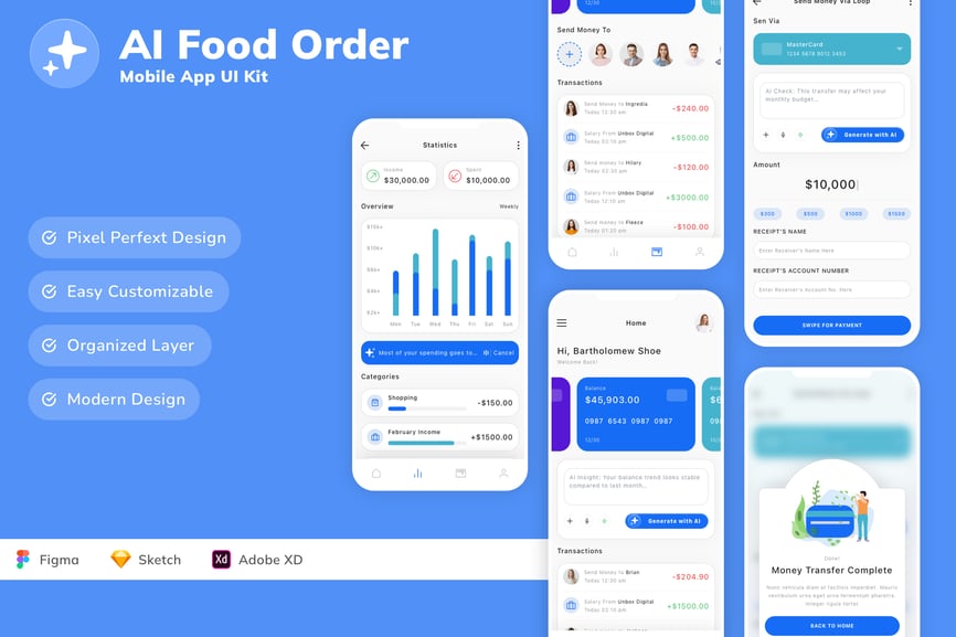 每个屏幕都可完全自定义,易于使用,并针对 Figma、Sketch 和 Adobe XD 进行了精心设计。