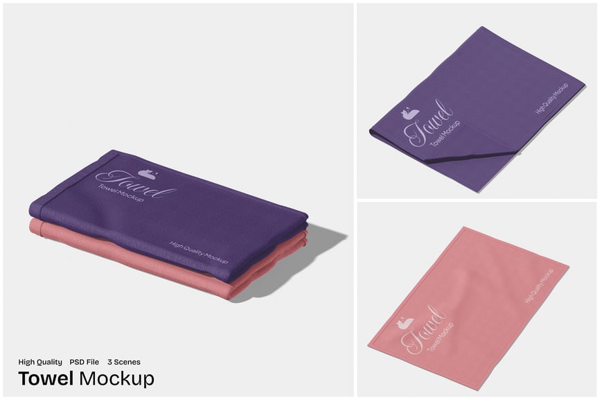 使用这款**毛巾样机**展示您的纺织品或酒店品牌,它非常适合**酒店品牌、水疗产品、家用纺织品和促销商品**。这款样机清晰地突出了面料纹理、褶皱和刺绣位置。