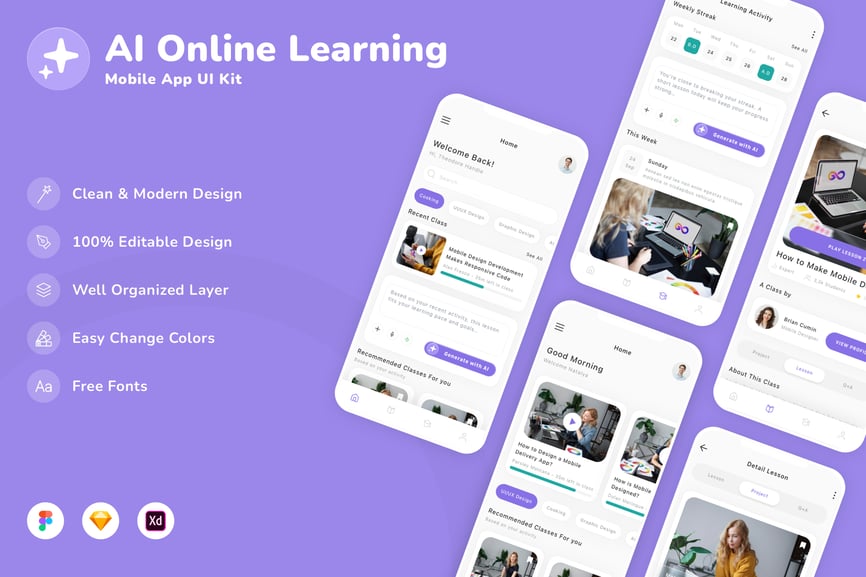 当前位置:首页UI素材Ui KitsAI在线学习移动应用UI套件