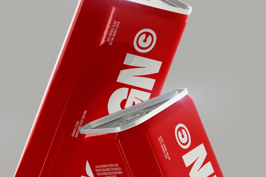 **汽水罐模型** – 分层、可编辑的 .psd 文件,可通过编辑智能对象和颜色图层来展示您的自定义设计。