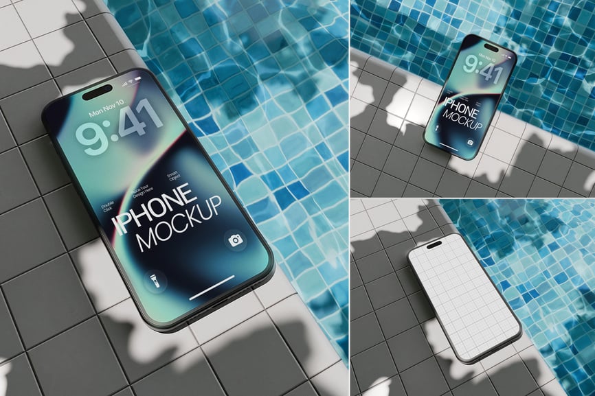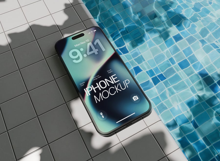 **泳池边的 iPhone 模型**