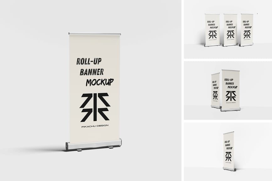 用这些精美的样机展示您的卷轴横幅样机。此样机包含 4 个元素,并提供分层清晰的 PSD 文件。此外,此样机还采用了智能对象功能,这意味着您只需几秒钟即可轻松快捷地将当前设计替换为您自己的设计。