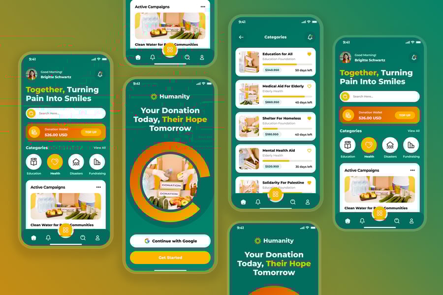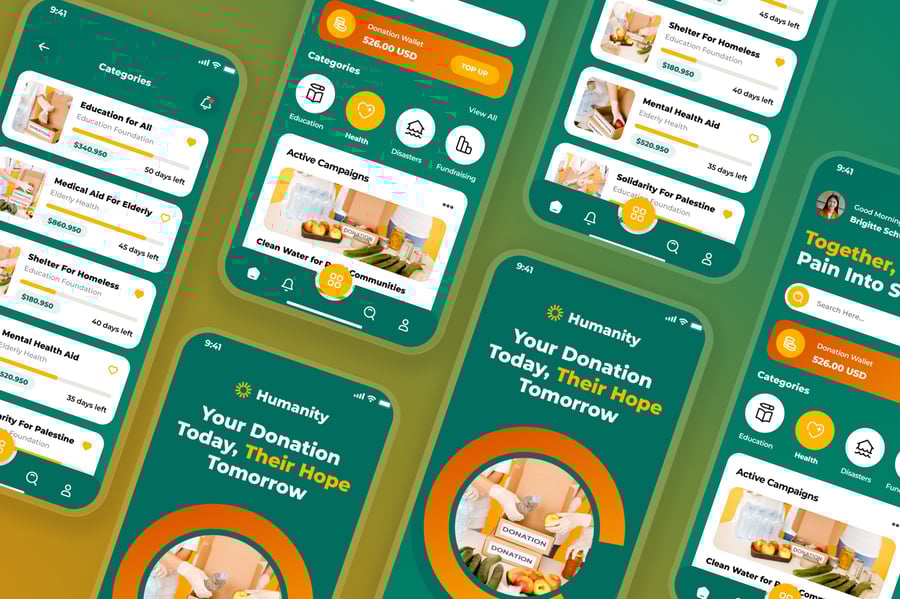 **慈善与捐赠移动应用 UI 套件**