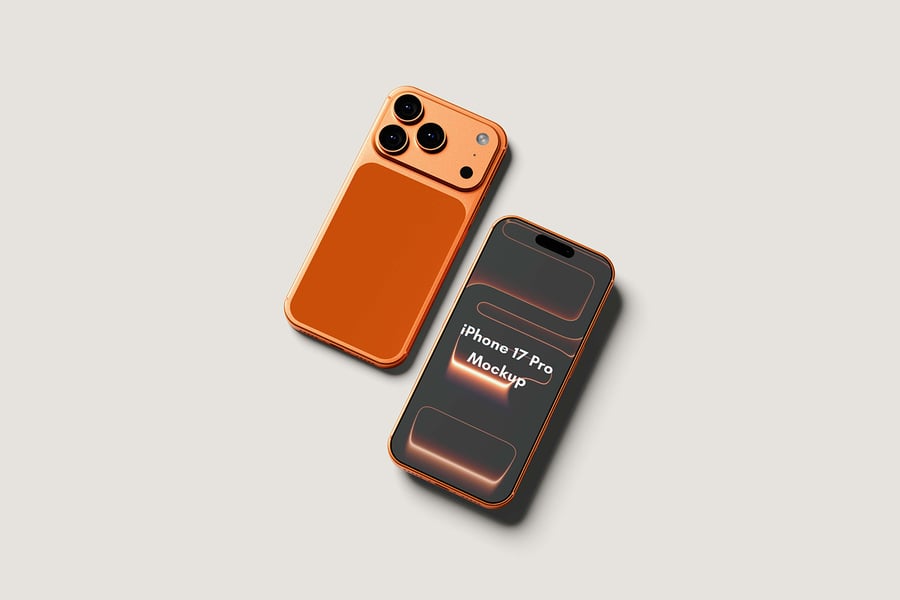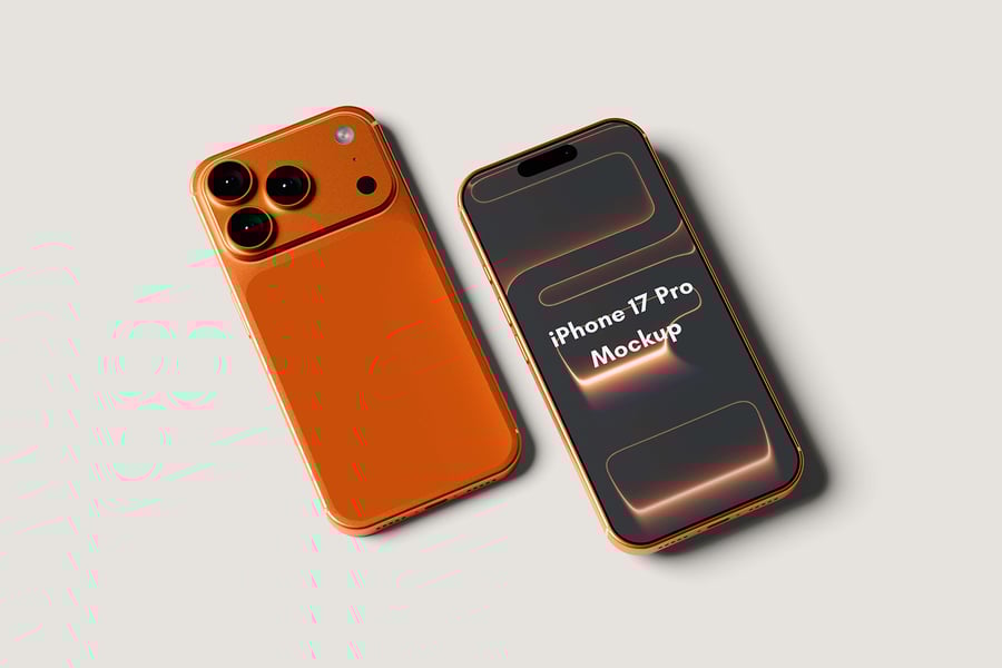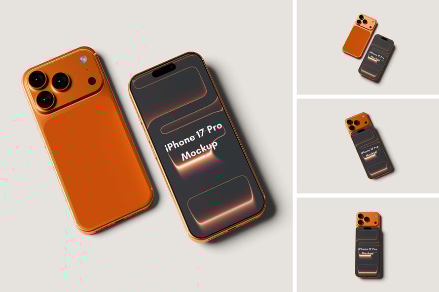 用这些精美的样机展示您高品质的 iPhone 17 Pro 奢华样机设计。此样机包含 4 个元素,并提供分层清晰的 PSD 文件。此外,该样机还采用了智能对象功能,这意味着您只需几秒钟即可轻松快捷地将当前设计替换为您自己的设计。