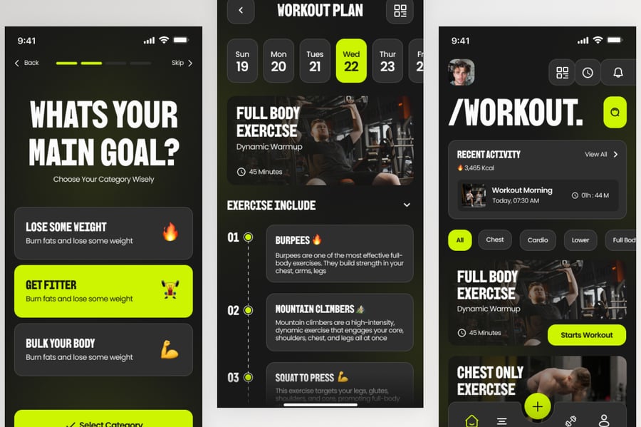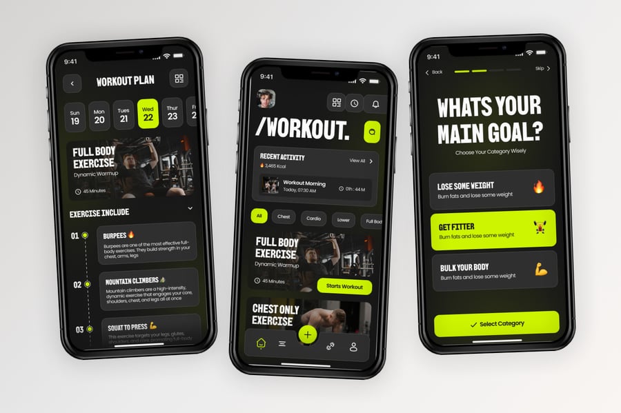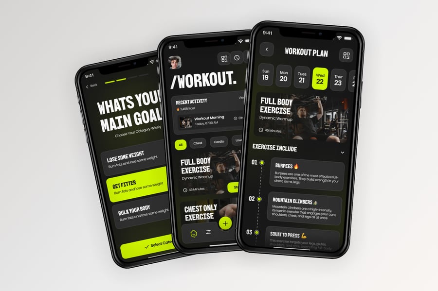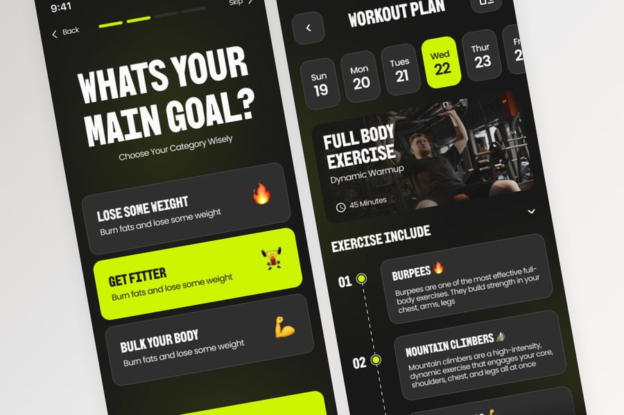 使用这款专业设计的模板,轻松打造极具影响力的健身移动应用。