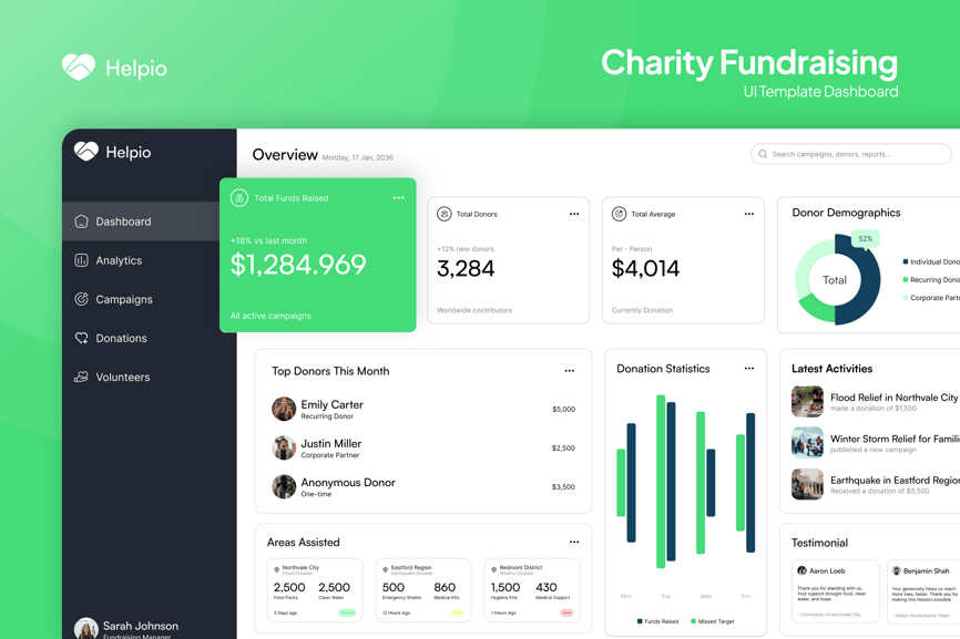 Helpio – 慈善筹款仪表盘 Figma 版