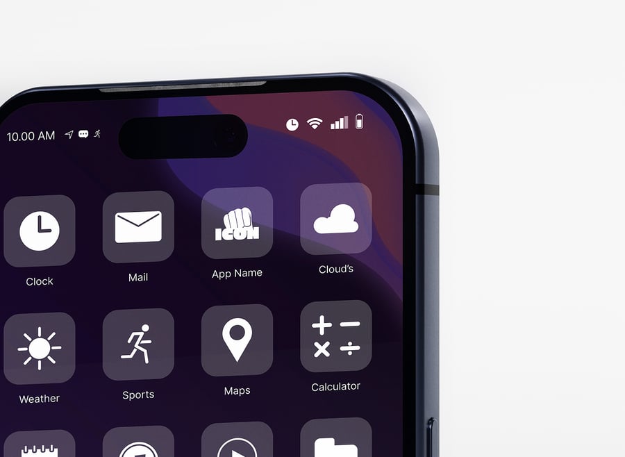 将您的屏幕设计拖放到智能对象图层中,即可立即查看效果。只需几秒即可调整图标网格、发光强度或反射强度,打造活力四射或简约精致的视觉效果。轻松更改设备边框和背景色调,以匹配您的移动应用设计理念。