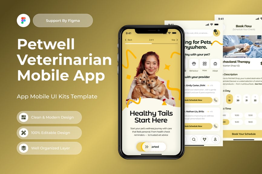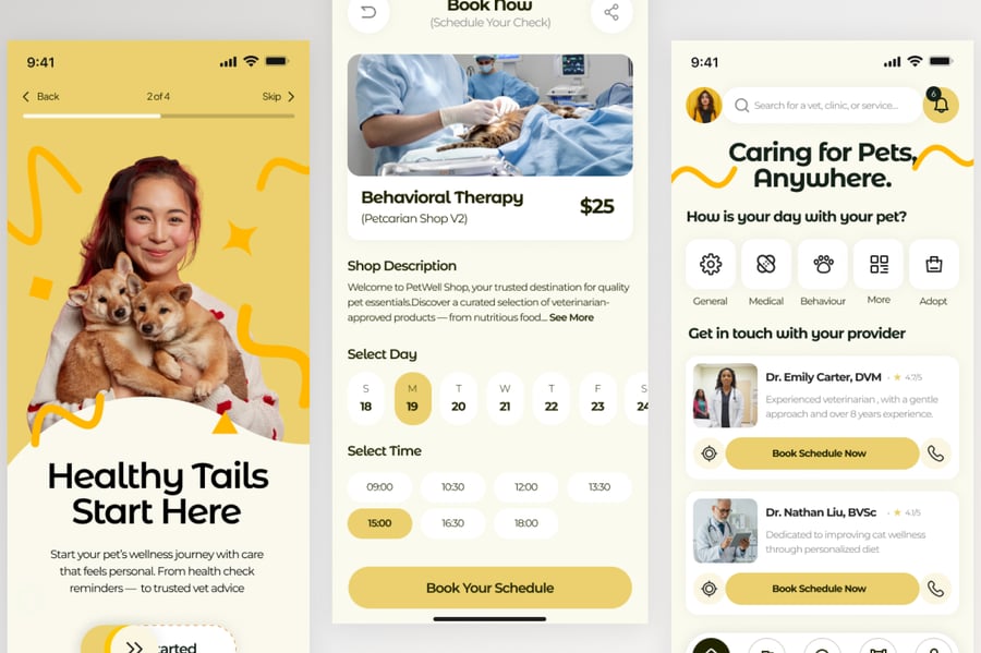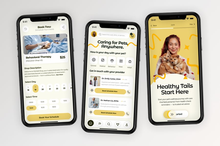 使用这款专业设计的模板,轻松打造极具影响力的兽医移动应用。