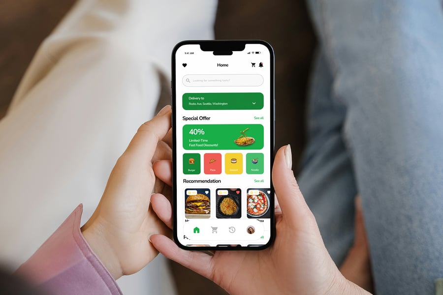 YumHub 是一款现代化的外卖应用,其用户界面旨在让订餐体验变得简单、友好且愉悦。界面采用简洁的布局,搭配充满活力、令人垂涎的橙色点缀和醒目的美食图片,引导用户流畅地浏览餐厅、菜单和结账流程。设计结构确保用户在浏览美食类别和详尽的菜单列表时能够轻松导航。