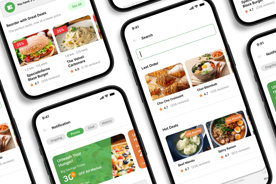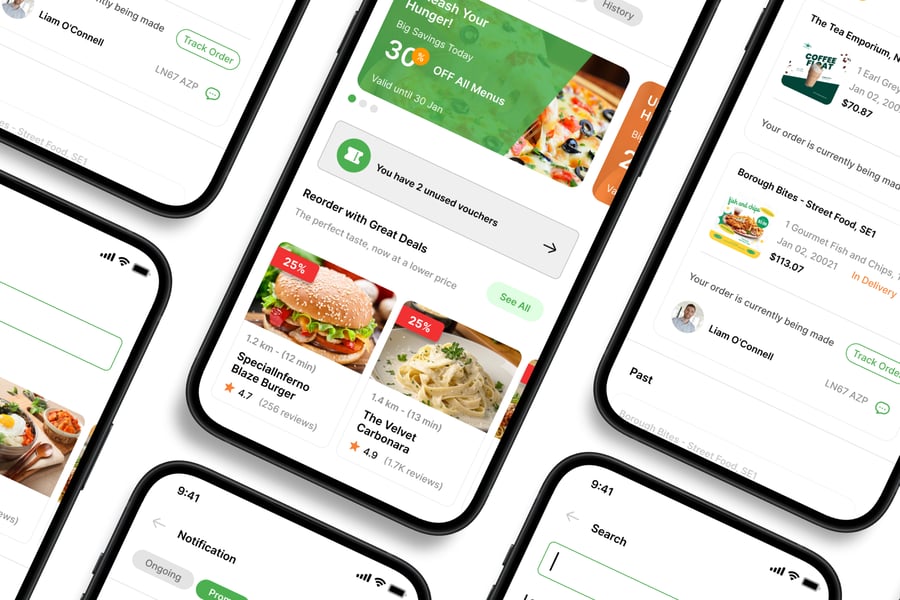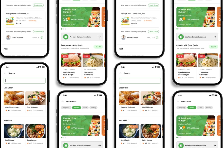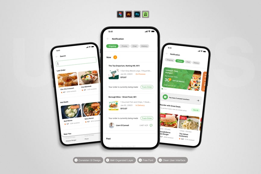 隆重推出**外卖配送**移动应用UI工具包,这是一款现代化且功能全面的解决方案,可助您轻松创建简洁易用的应用界面。对于希望加快设计流程的设计师和开发者而言,这款UI工具包堪称完美之选,它将您所需的所有基本组件整合在一个井然有序的软件包中。