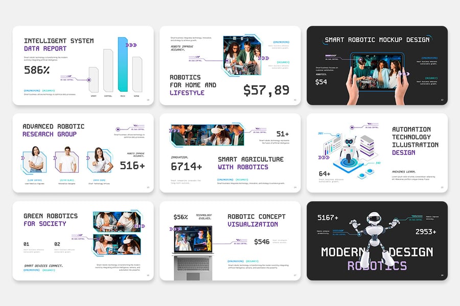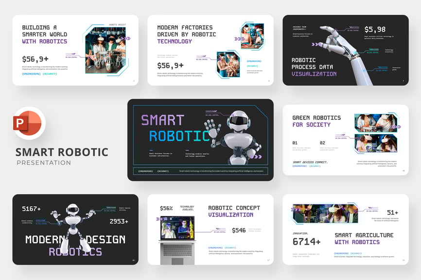 **智能机器人演示 – 技术类 PowerPoint 模板** 使用智能机器人模板提升您的演示效果。这款多功能、创意十足且设计简洁的 PowerPoint 模板,专为企业和个人用途而设计。它融合了现代美学与专业气质,是任何希望给客户或利益相关者留下深刻印象的人士的理想之选。凭借其灵活的风格和简洁的设计,智能机器人模板能够提升您的演示质量,使其成为有效传达理念和提升客户参与度的必备工具。