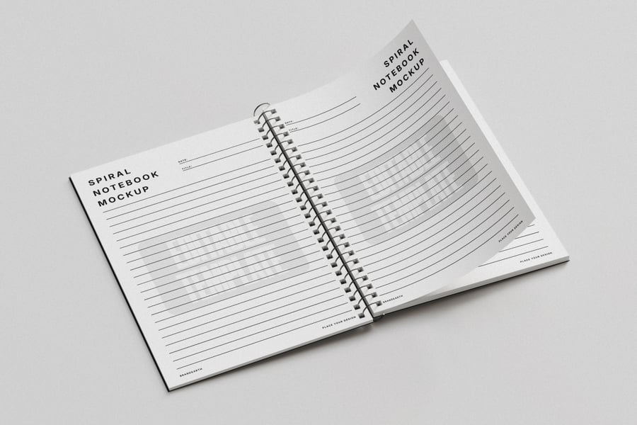 这款螺旋笔记本样机采用简洁流畅的布局,非常适合展示笔记本封面和内页设计。PSD 文件包含封面、叠放的笔记本以及带有逼真光影效果的翻页视图。您可以使用智能对象轻松编辑并插入您的设计稿。高分辨率格式,4000×3000 像素,300 DPI,是品牌推广、文具设计演示或电商展示的理想之选。