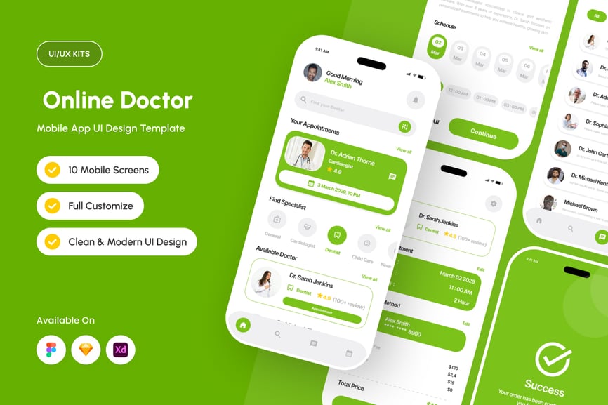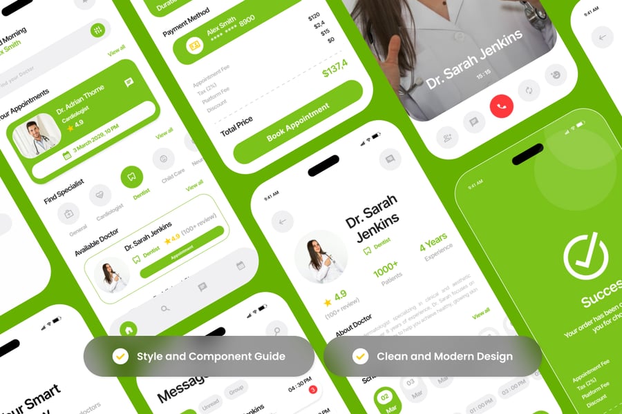 这款精心设计的界面旨在简化复杂的医疗预约和线上咨询流程,从而弥合医疗保健服务可及性方面的差距。它秉承以人为本的设计原则,采用简洁明了的用户界面,助力平面设计师打造权威而又不失人情味的优质移动应用体验。每个元素都经过精心设计,确保流畅的用户体验,是任何希望推出功能强大、性能卓越的医疗服务应用的艺术总监的必备工具。