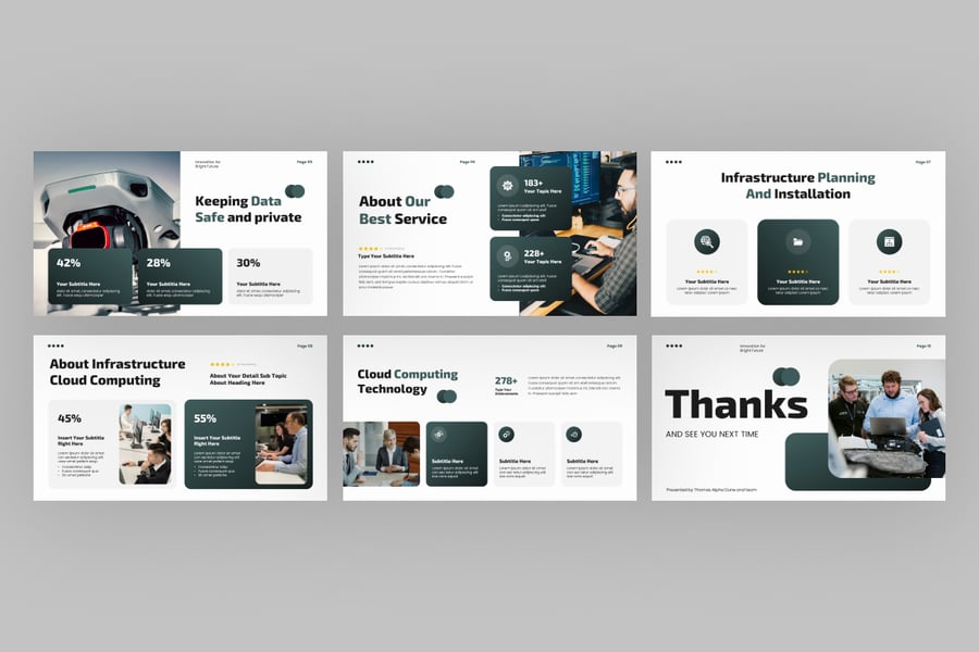 10 张独特的幻灯片,可编辑的文本和图形,现代简约的布局,拖放式图像占位符,清晰的内容层级,一致的色彩风格,以及 16:9 宽屏格式