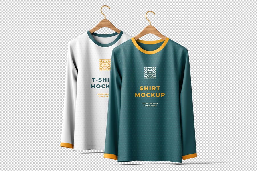 可自定义的长袖衬衫模型,可以编辑,以展示您的衬衫设计,艺术品或插图。您可以使用2个智能对象层编辑设计,每件衬衫一层。除了更改设计外,您还可以自定义样机和其他各种方式,例如更换袖子,袖子边缘和脖子颜色,调整织物色调,调整阴影不透明度和颜色,并更换背景。