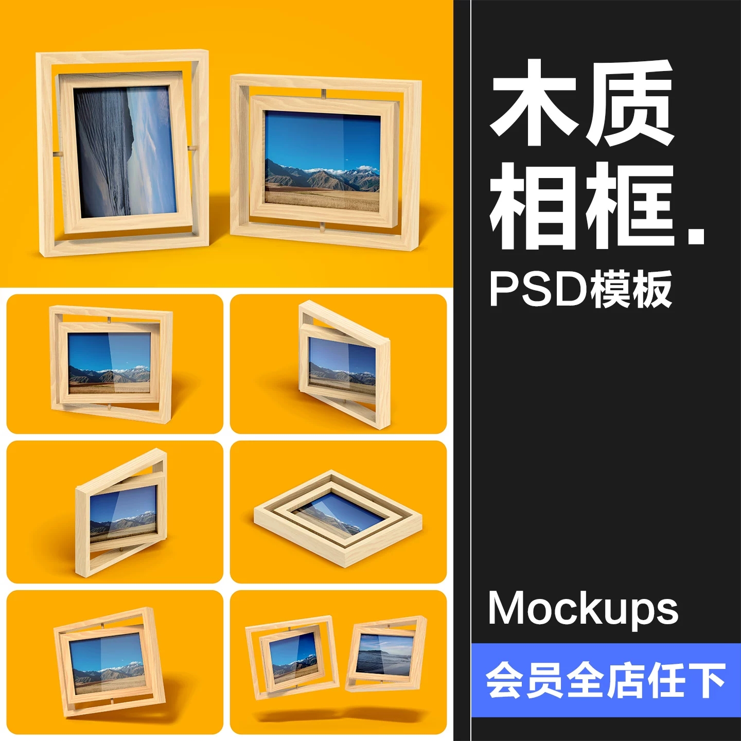 9款木质可旋转相框旅游相册照片效果展示贴图样机VI品牌提案PSD素材
