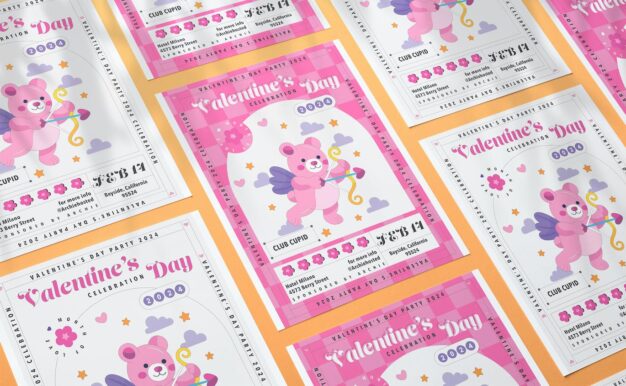 “空气中弥漫着爱意,我们正在为今年的情人节举办一场迷人的庆祝活动!隆重推出我们的丘比特主题活动传单模板,旨在吸引人们的心并传播浪漫的精神。 您可以轻松编辑和自定义每个设计,因为文本、图像和形状等每个图层都井然有序且可编辑。- 773