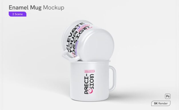 **搪瓷杯模型 – 经典和耐用的显示** 用这种逼真的搪瓷杯模型展示您的设计,非常适合在永恒而坚固的饮料项目上展示徽标,图案或品牌。户外品牌,复古商品或投资组合演示文稿的理想选择。- 1.3k