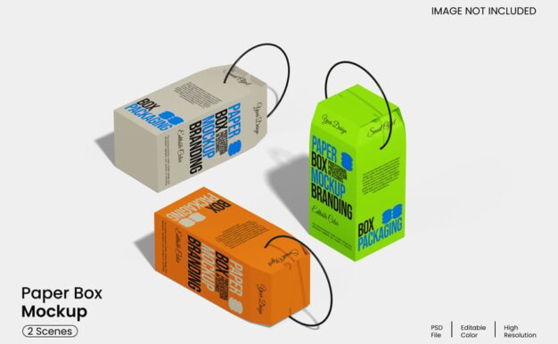 **纸礼品盒模型** 使用此**纸礼品盒模型展示您的包装设计,非常适合零售产品,环保包装或优质的品牌。非常适合投资组合,客户演示文稿和营销活动,它使您的受众可以看到您的设计如何增强纸盒包装的实用性和美学吸引力。该模型以精确的方式精心制作,可确保您的品牌以精致和专业的方式展示。- 1.4k